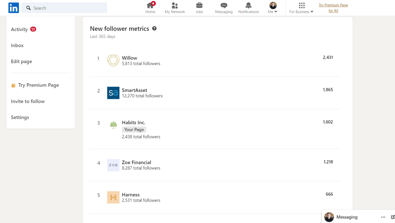 A simple example is the screenshot above where we track our competitors follower growth on LinkedIn.