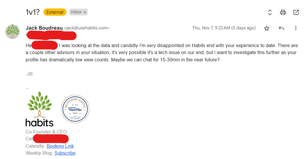 Reward those who offer good feedback! For example, 50% of our initial advisor based got access to invest in Habits early on.