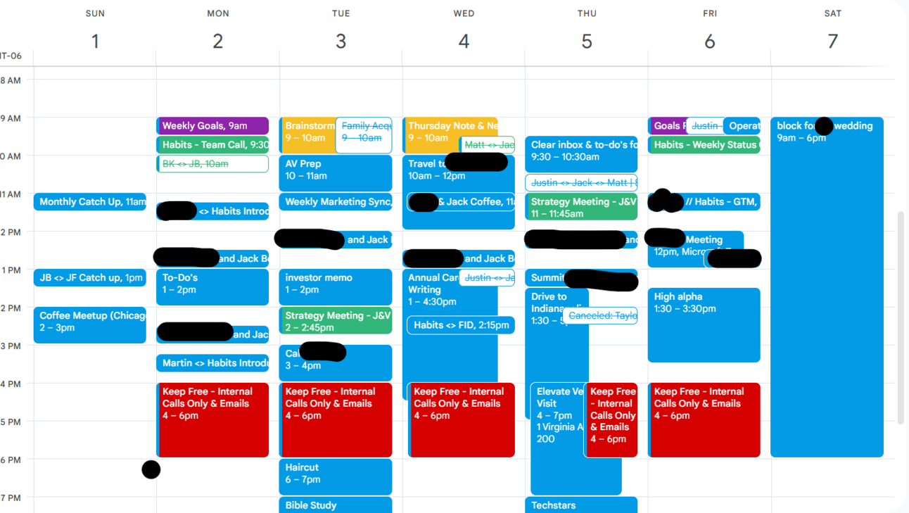 5-30hrs for meetings: Zooms with users, 1v1’s, team stand ups, fundraising or meeting VCs, general networking calls